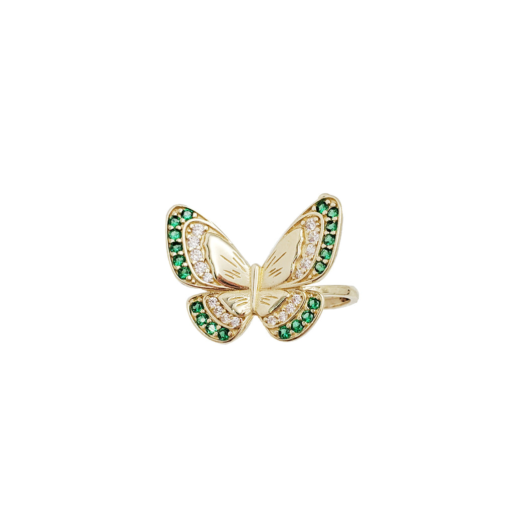 Pink /Green / Dark Pink Butterfly Zirconia Ring (14K) .