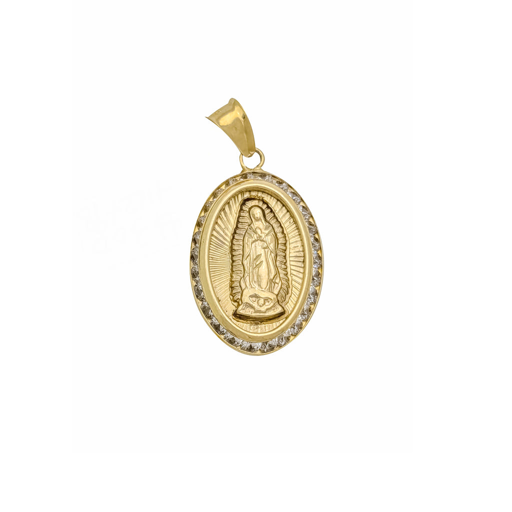 Oval Virgin Mary Diamond Cut CZ Pendant (10K)