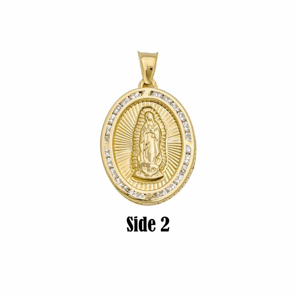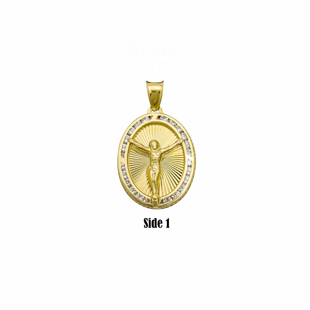Reversible Diamond Cut Jesus Crucified / Virgin Mary CZ Pendant (10K)