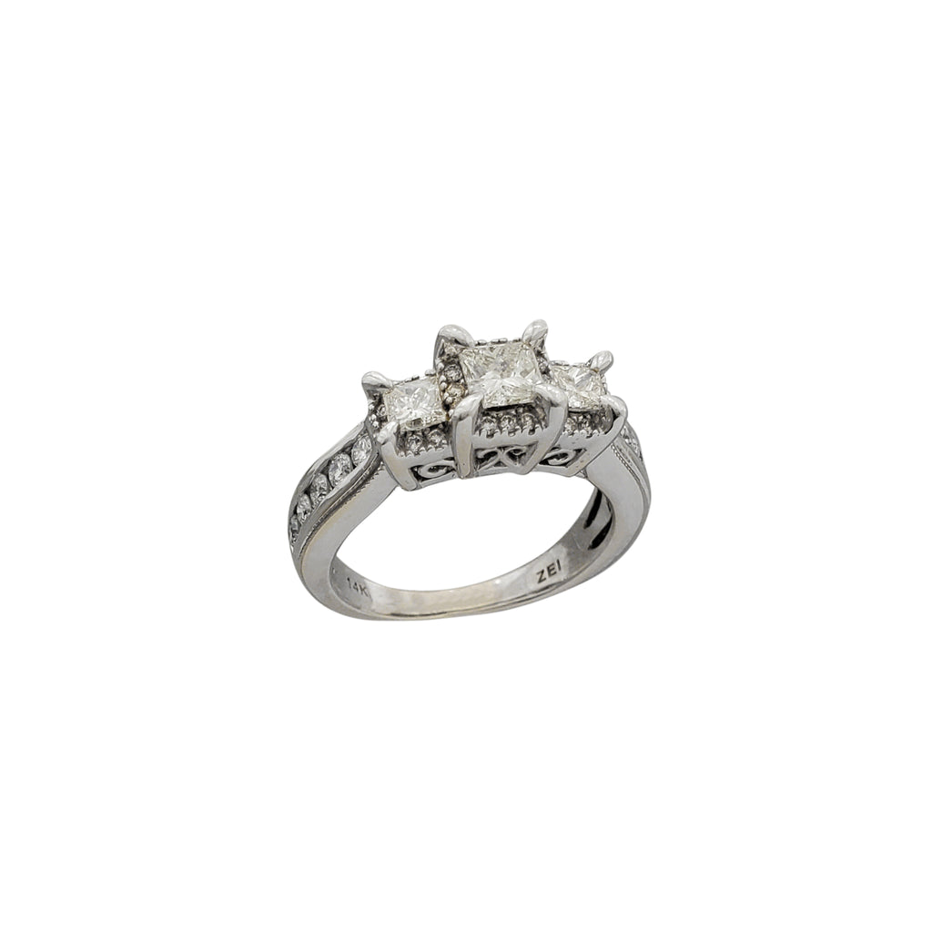 Diamond Milgrain 3-Stone Engagement Ring (14K)