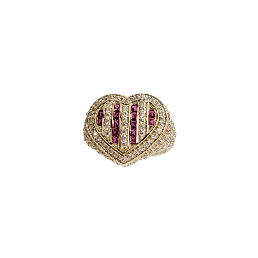 Ice-Out Pink & White Stone Heart Ring (14K)