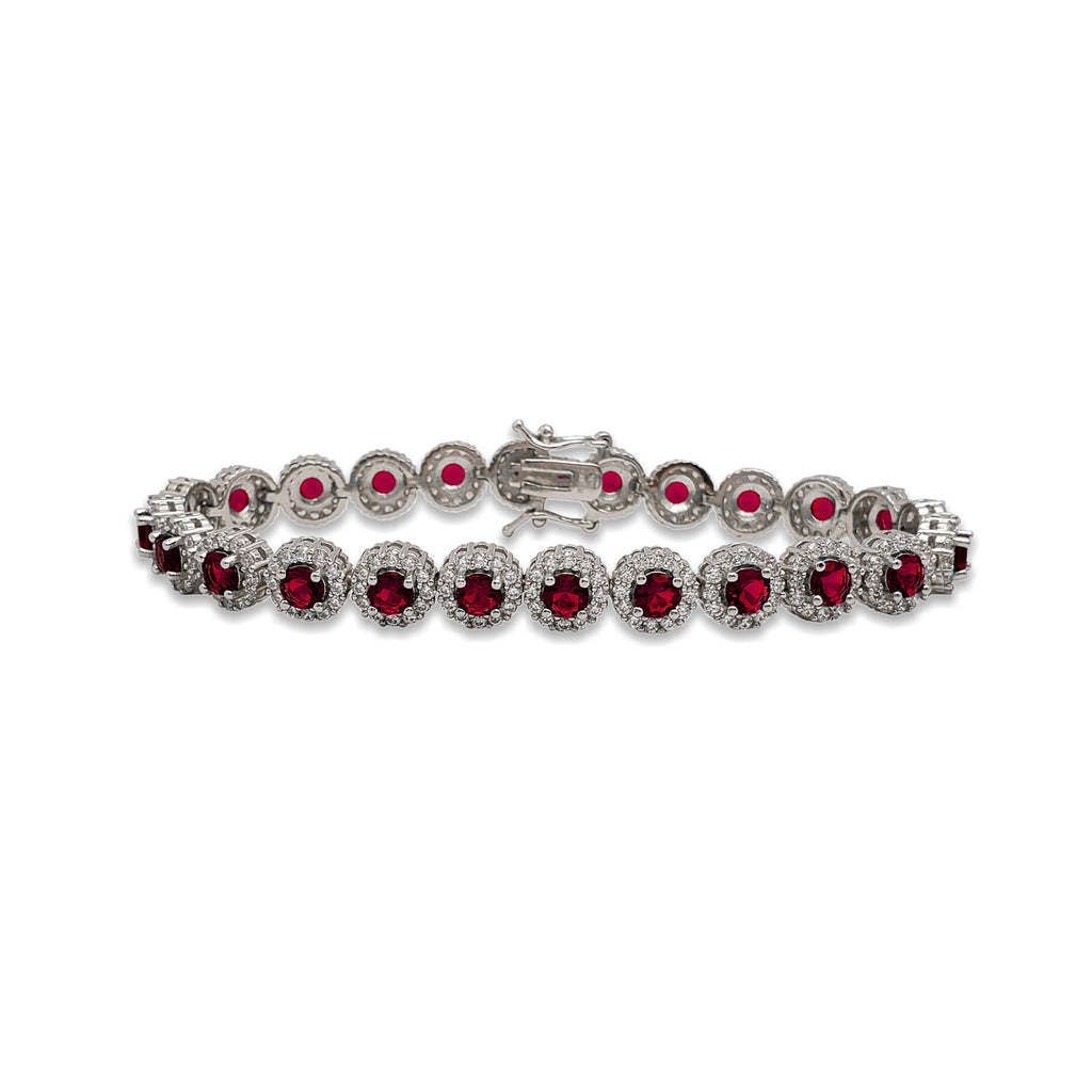 Dark Orange Zirconia Halo Round Tennis Bracelet (Silver)