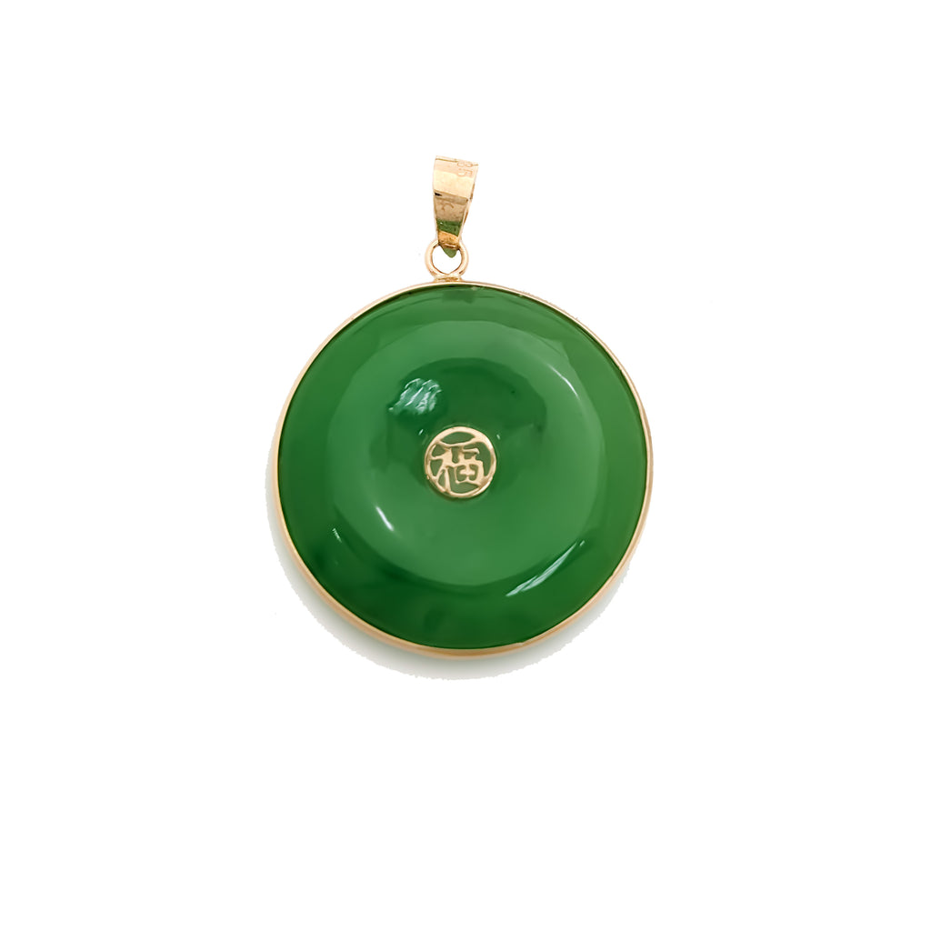 Green Jade Disc 'Fortune & Happiness' Pendant (14K)