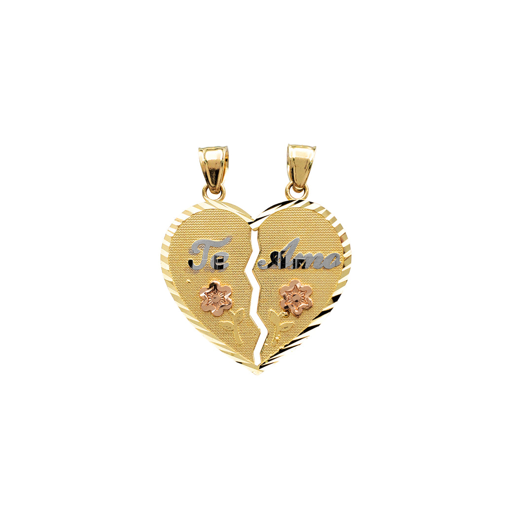 Te Amo Long Stem Rose Flower Partable Heart Pendant (14K)