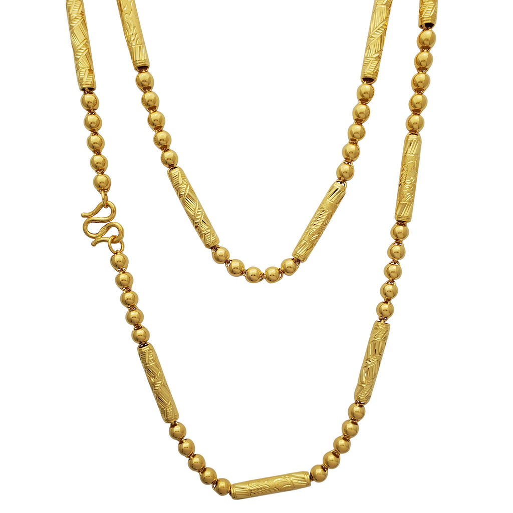 Glossy Diamond-cuts Bar & Ball Necklace (24K)
