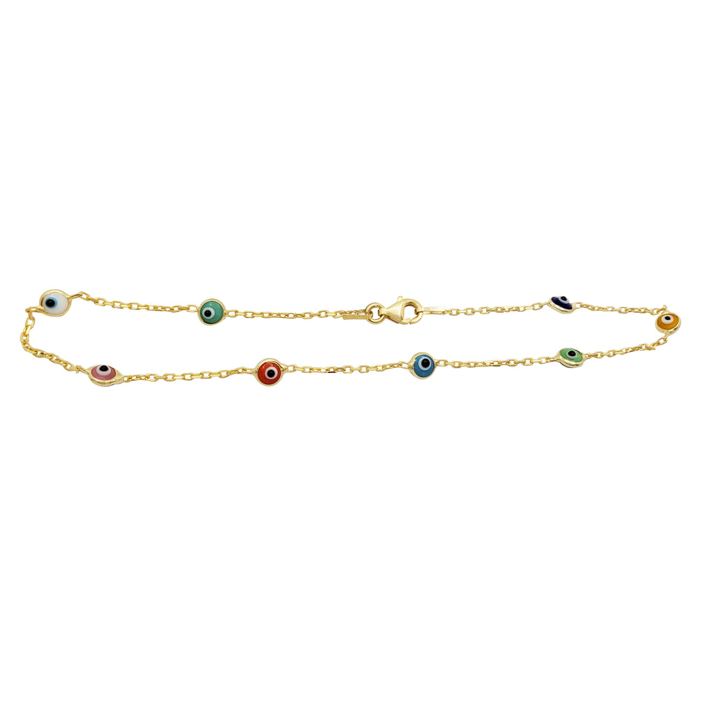 Multicolor Evil Eyes Ankle Bracelet (Silver)
