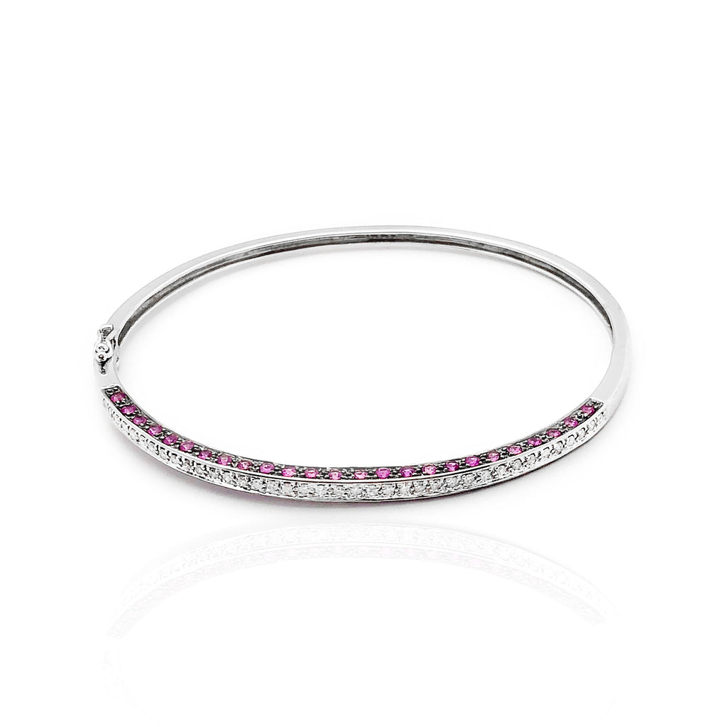 White Gold Pink Sapphire & Diamond Bangle Bracelet (14K)