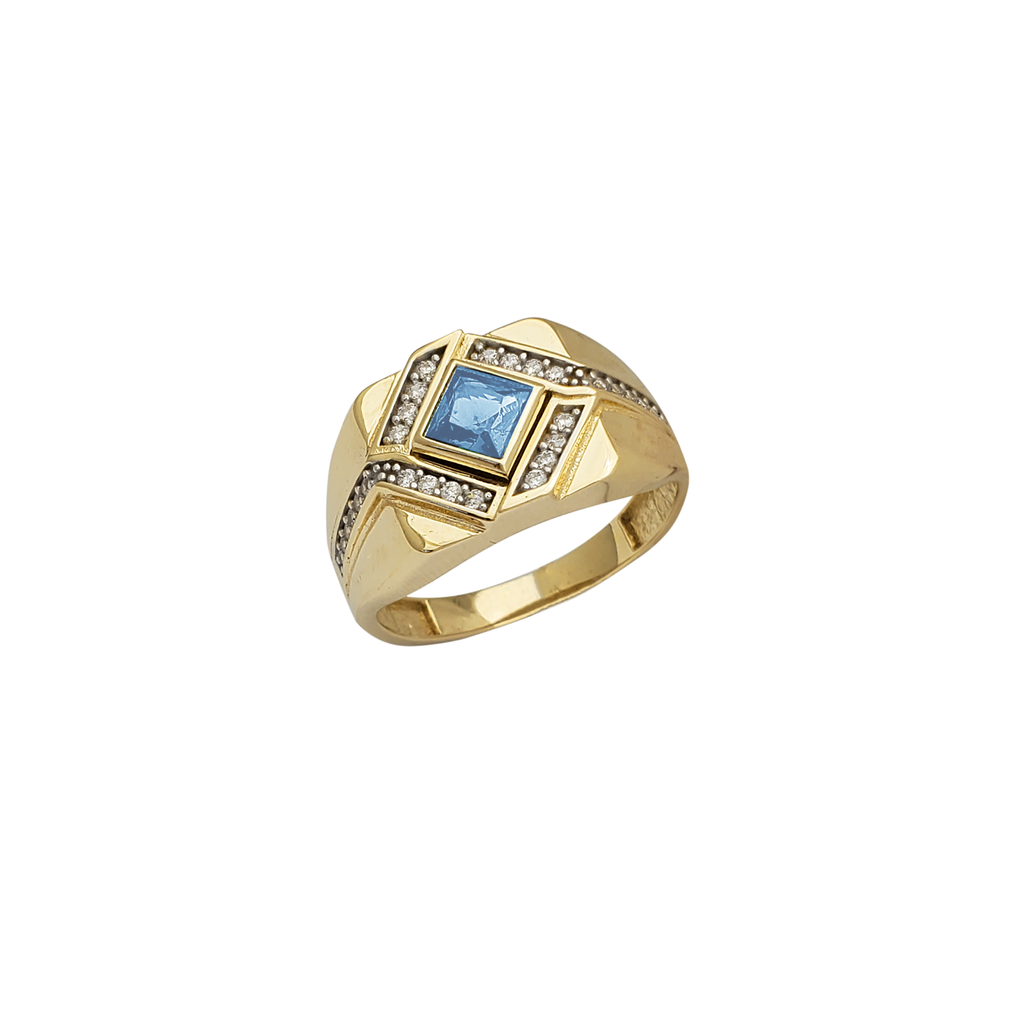 Light Blue Rhombus Zirconia Men's Ring (14K)