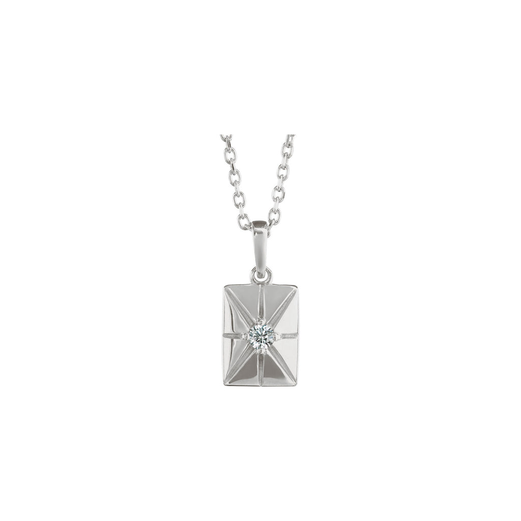 Natural White Diamond Starburst Rectangular Bar Pendant