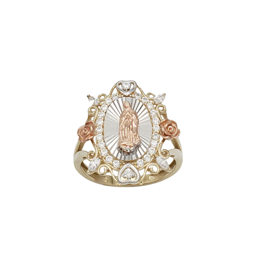 Tricolor Flower Virgin Mary CZ Ring (14K)