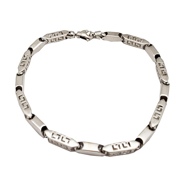 White Gold Imprinted Bullet Link Bracelet (14K)
