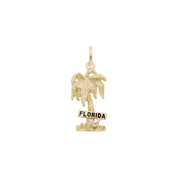 Zirconia Channel-set Puerto Rico Palm Tree View Round Pendant (14K)