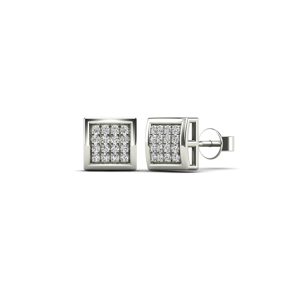 White Gold Diamond Square Dome Stud Earrings (14K)