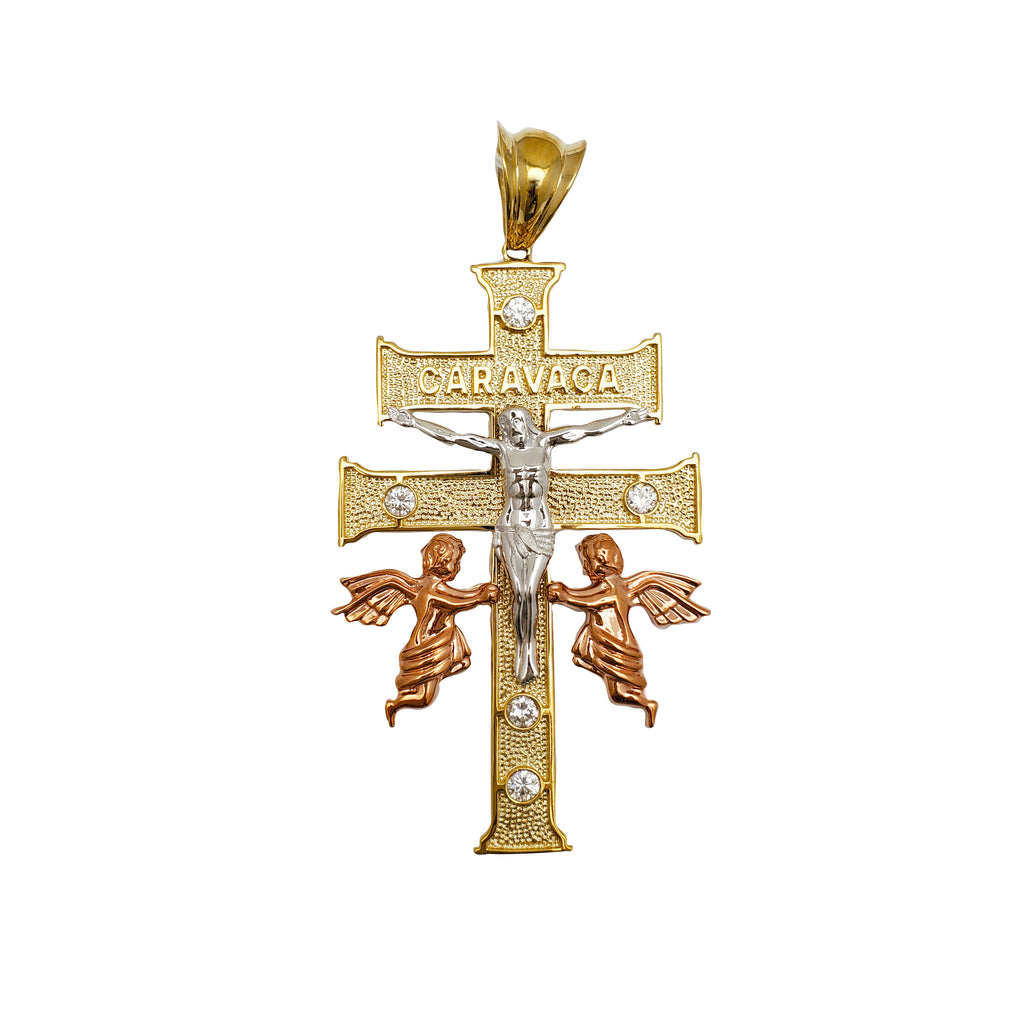 Tricolor CZ Caravaca Cross Pendant (14K)