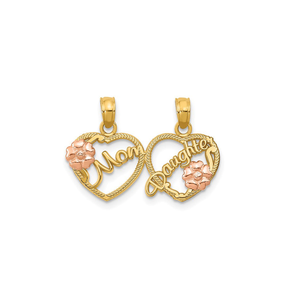 Break Apart Double Heart "Mom & Daughter" Heart Pendant (14K)