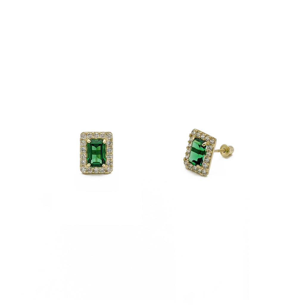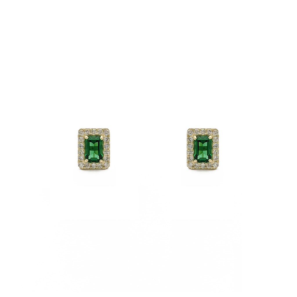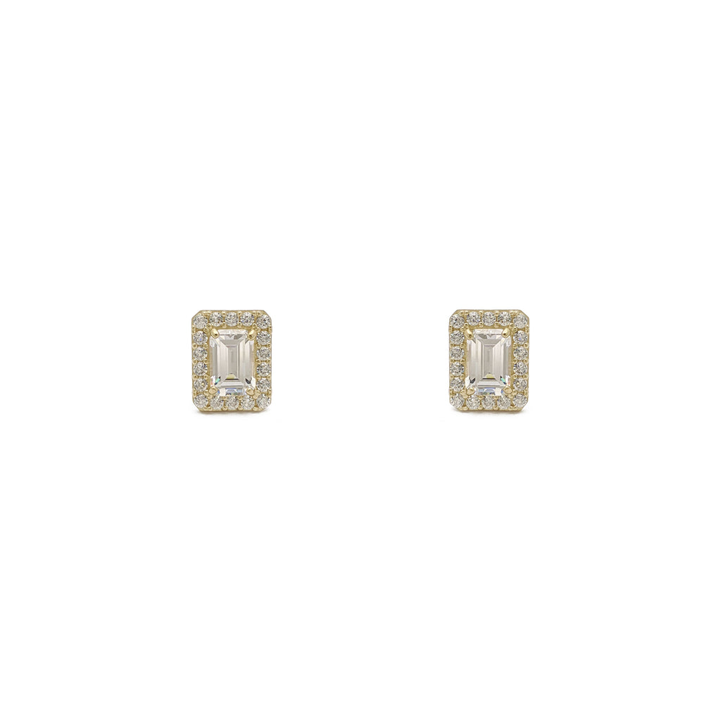 Emerald-Cut Gemstone Halo Earrings (14K)