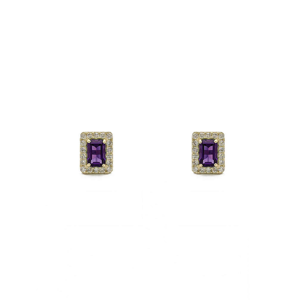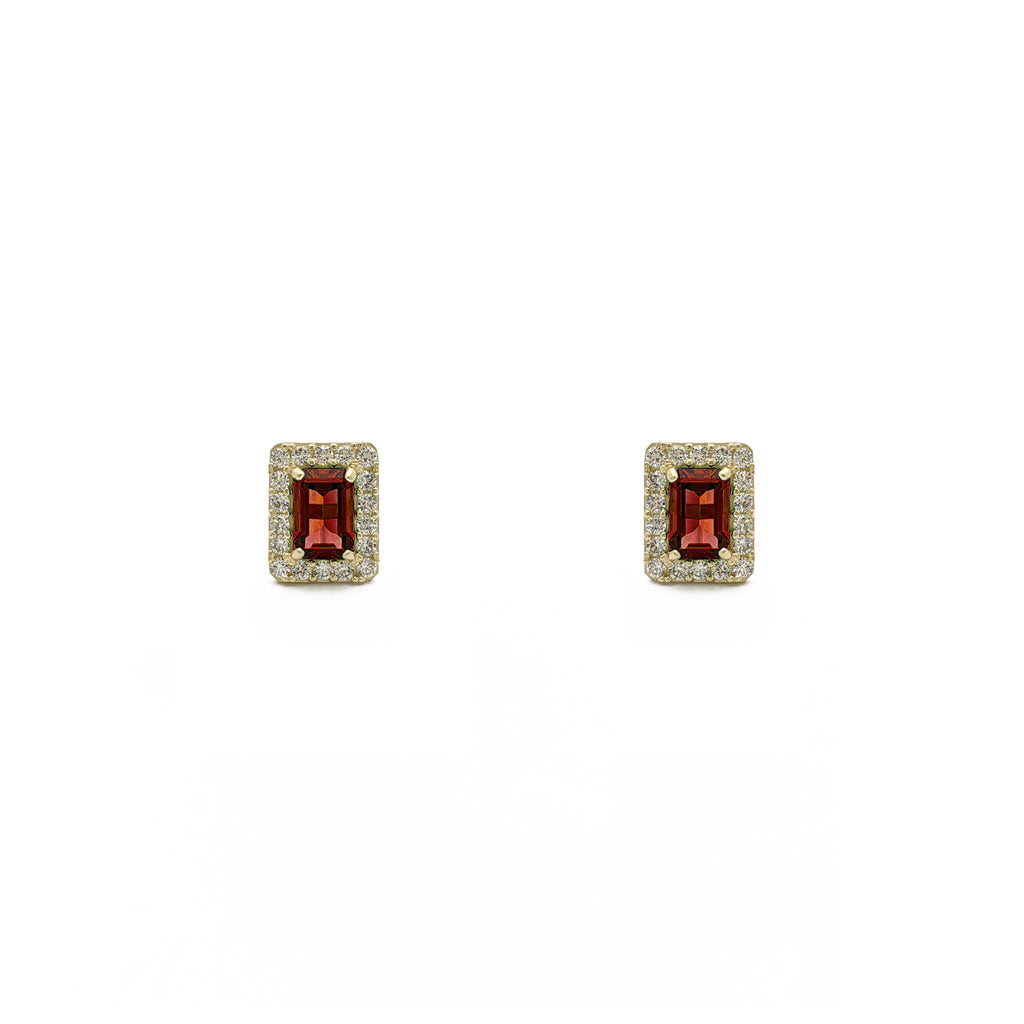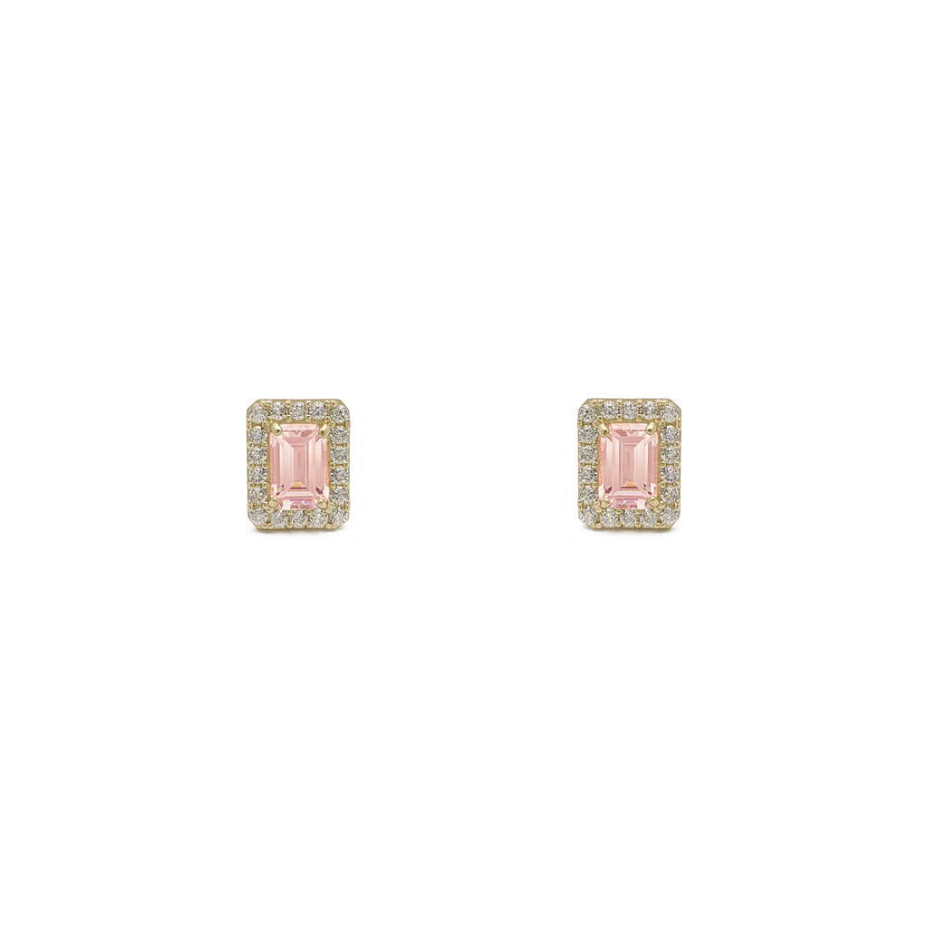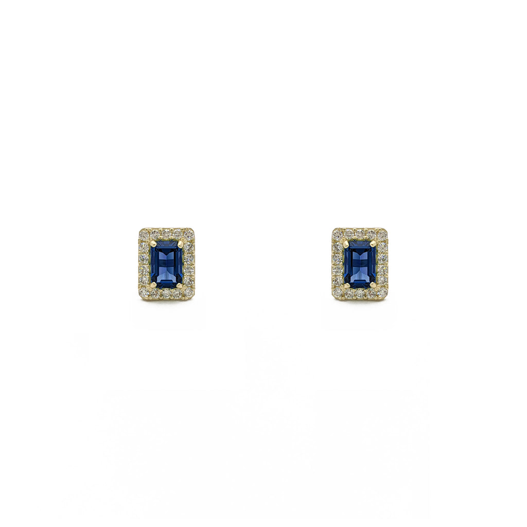 Emerald-Cut Gemstone Halo Earrings (14K)