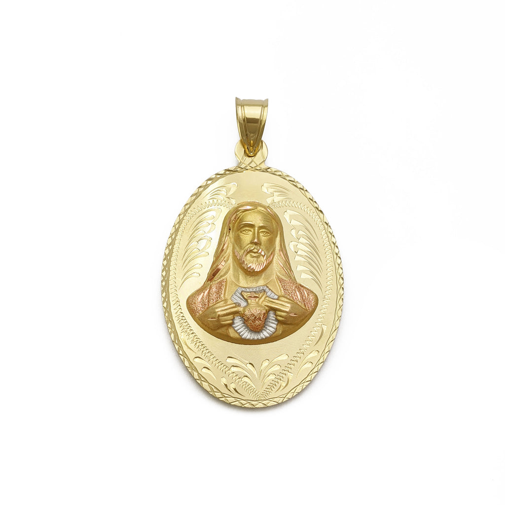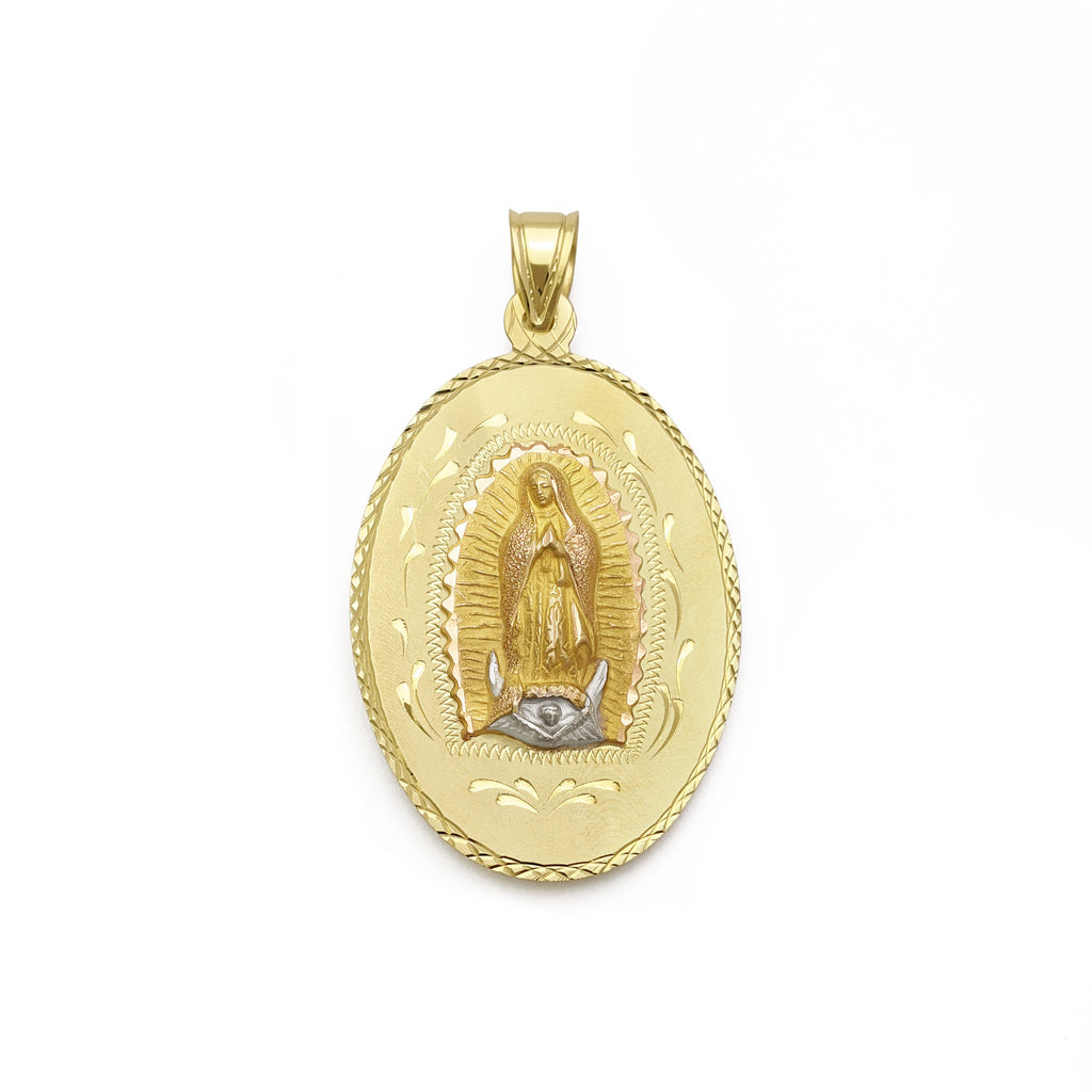 Reversible Sacred Heart of Jesus and Guadalupe Oval Pendant (14K)
