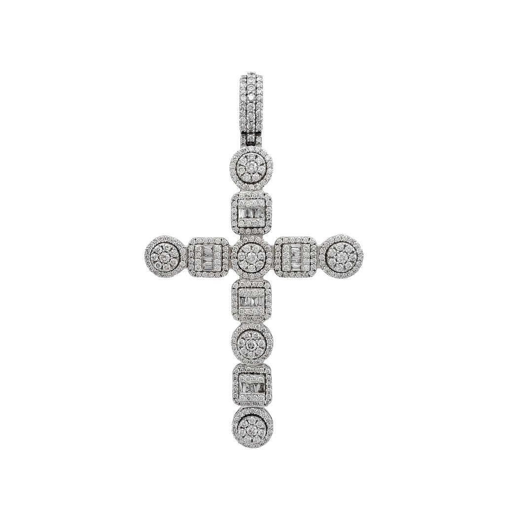Diamond Round & Square Pattern Cross Pendant (10K)