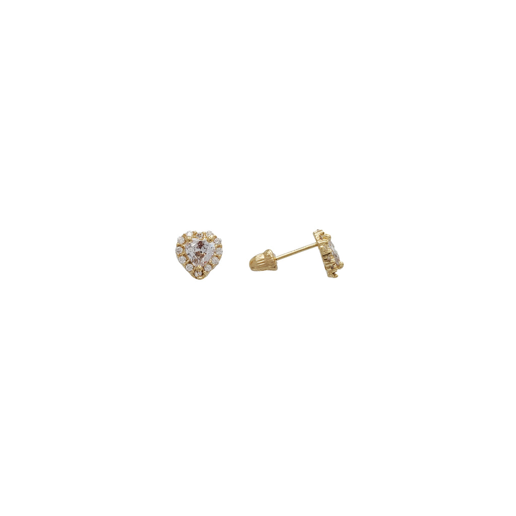 CZ Halo Heart Stud Earrings (14K)