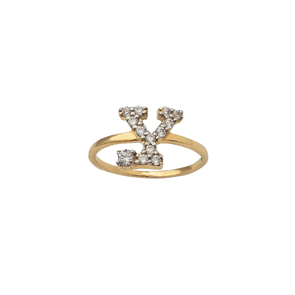 Zirconia Initial Letter "Y" Solitaire Ring (14K)