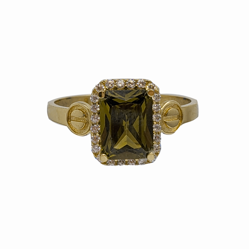 Green Emerald Cubic Zirconia Lady Ring 18K
