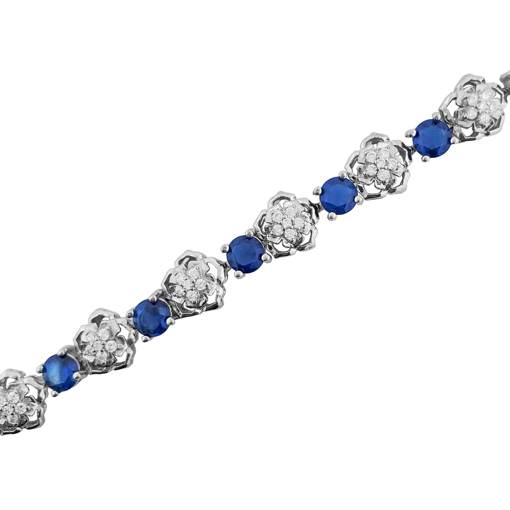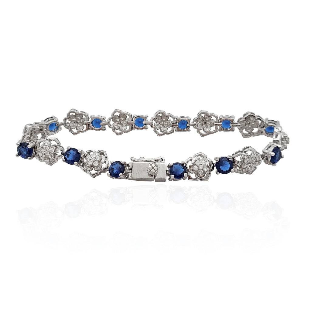Petaled Link Blue Stone Tennis Bracelet (Silver)
