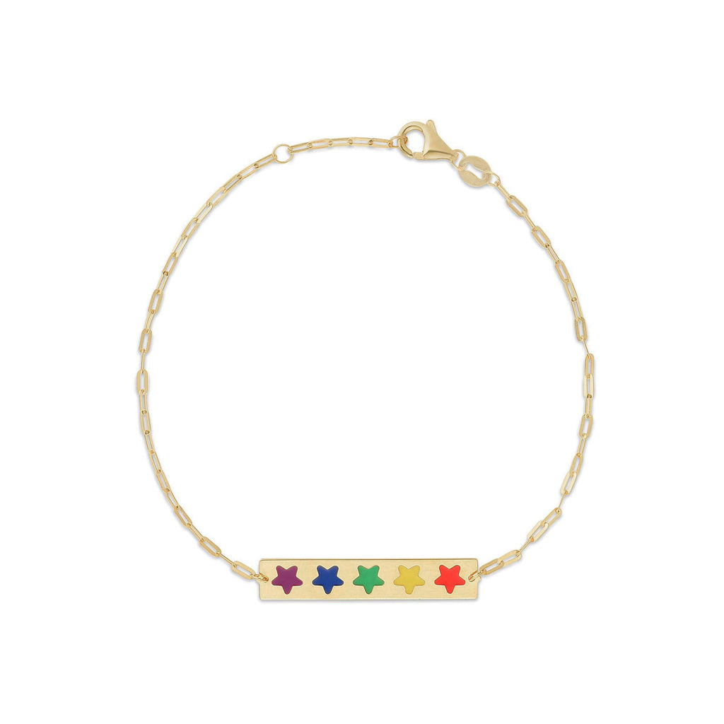 Rainbow Stars Enamel Bar Bracelet (14K).