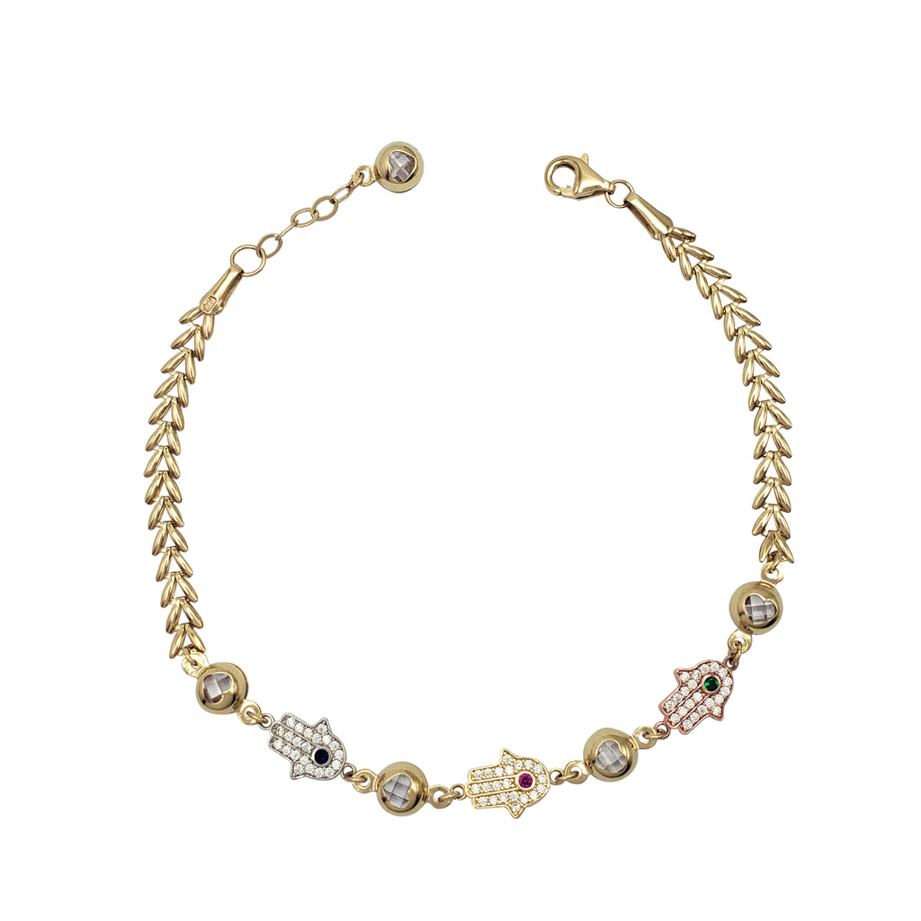 Zirconia Tricolor Hamsa Hand Fancy Lady Bracelet (14K)
