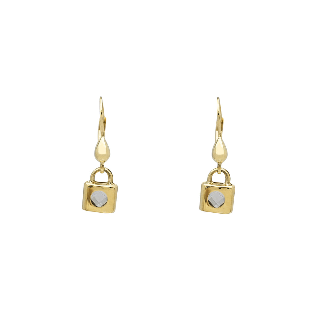 Zirconia Dangling Padlock Huggie Earrings (14K)
