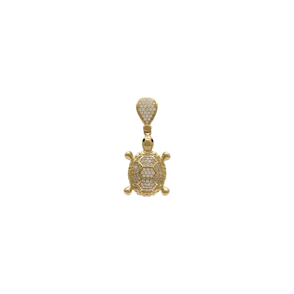 Turtle with CZ Accented Shell Pendant (14K)