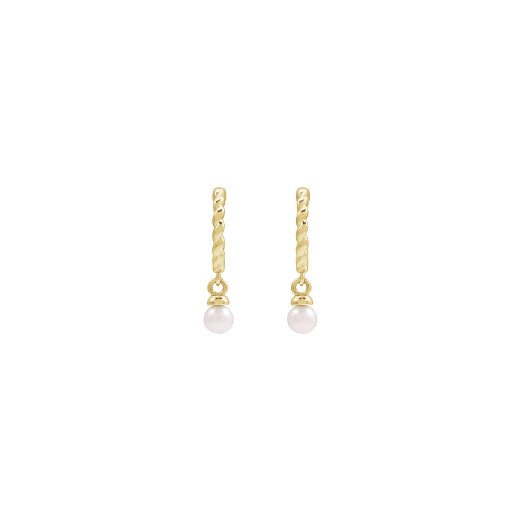 Freshwater Pearl Dangling Rope Hoop Earrings (14K)