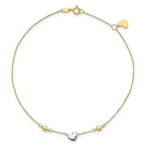 Two Tone Heart and Bead Anklet Bracelet (14K)