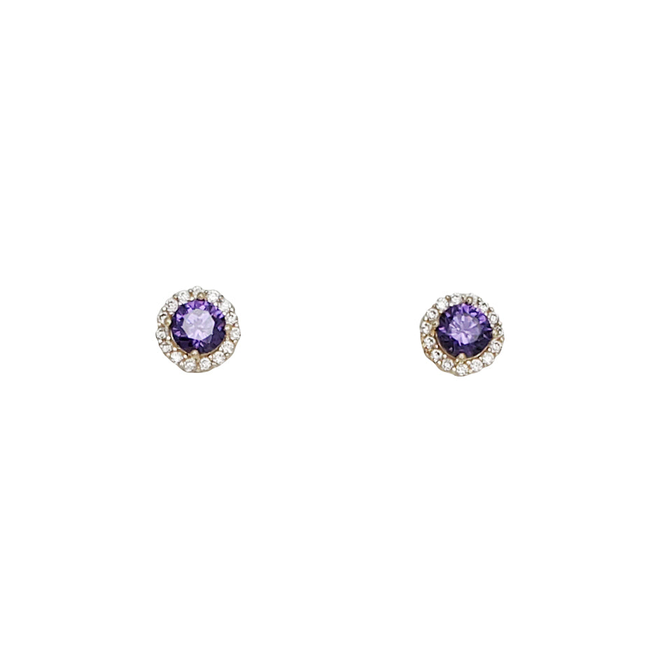 Zirconia Halo Round Stud Earrings (14K)