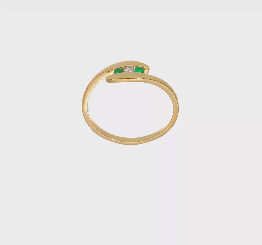 Emerald and Diamond 3-Stone Tension Ring (14K)