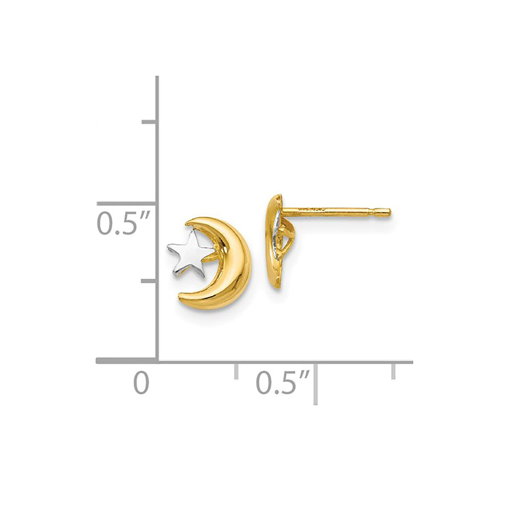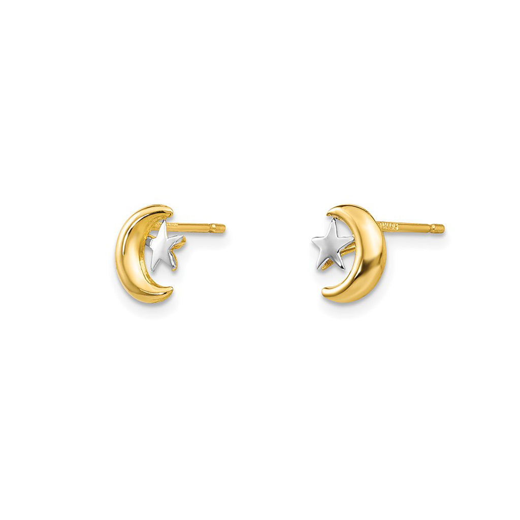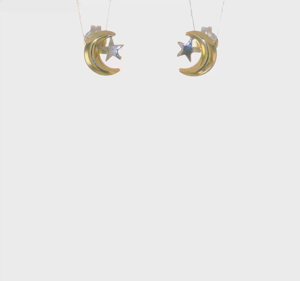 Two-Tone Crescent Moon & Star Stud Earrings (14K)
