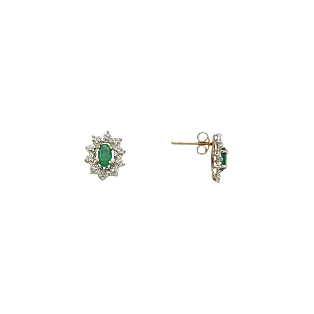 Oval Emerald Diamond Halo Stud Earrings (10K)