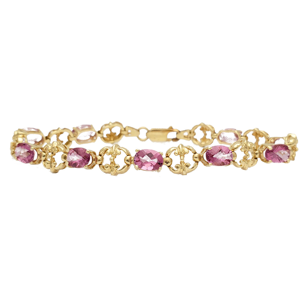 Pink Oval Zirconia Filigree Bracelet (14K).
