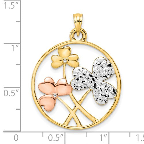 Tricolor Round Outlined Frame Clovers Pendant (14K)
