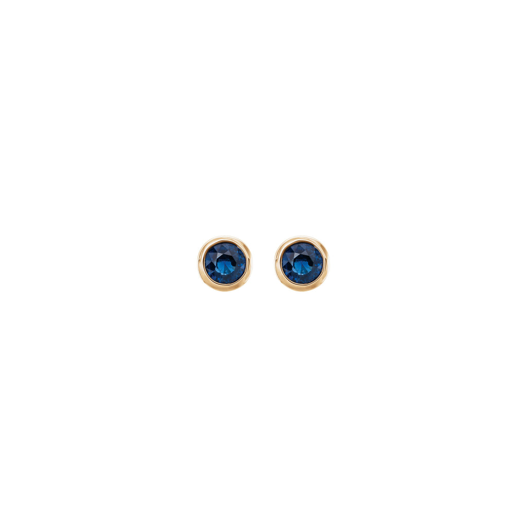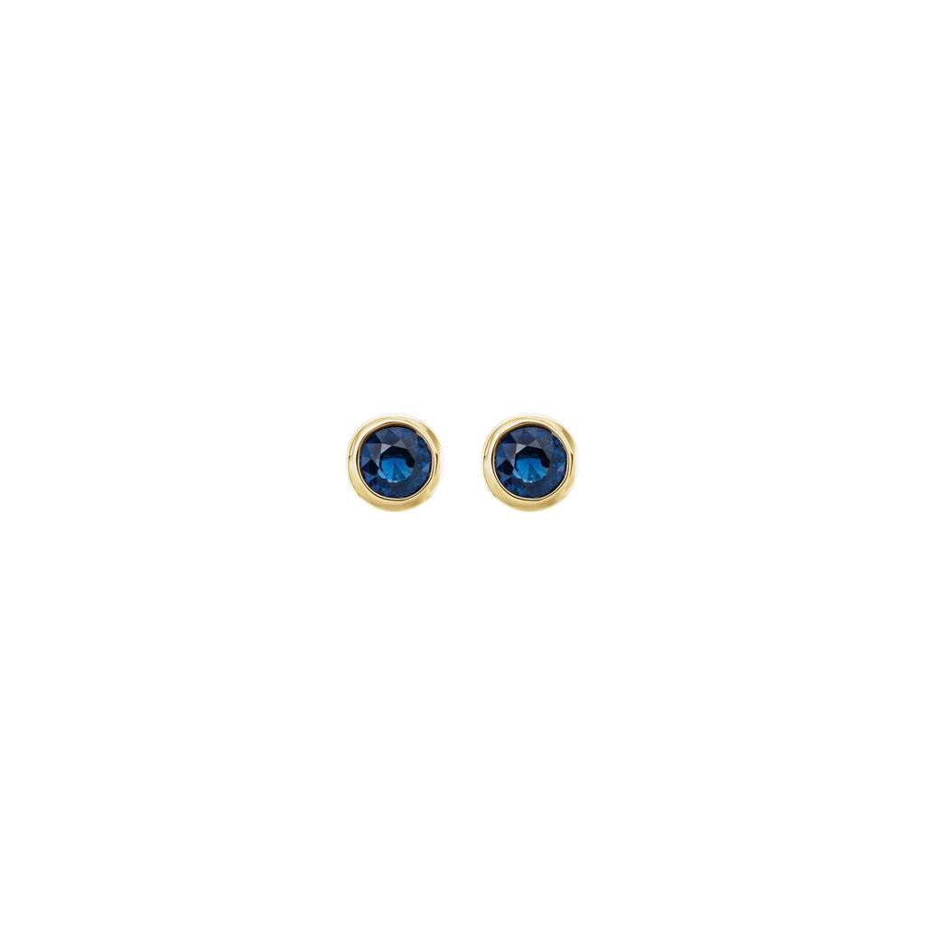 Natural Blue Sapphire Bezel Stud Earrings (14K)