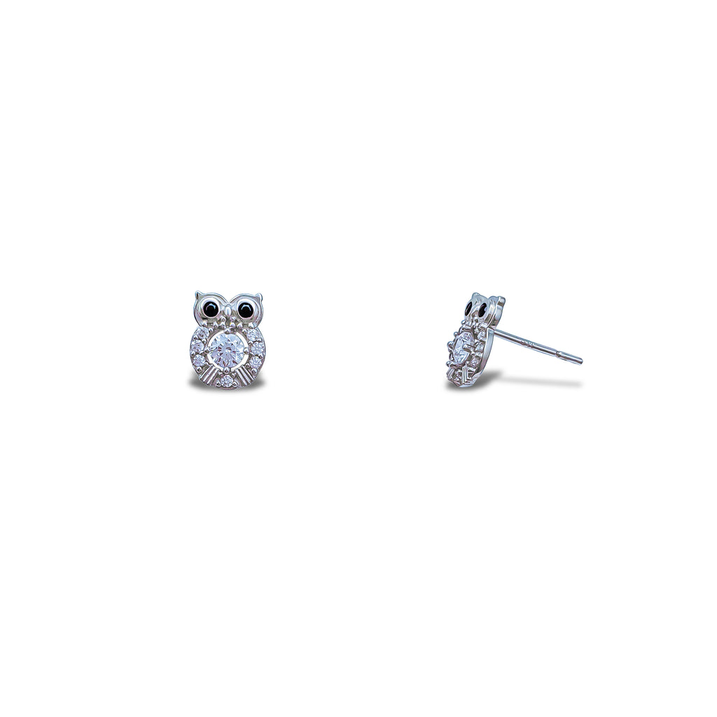 Zirconia Owl Stud Earrings (14K)