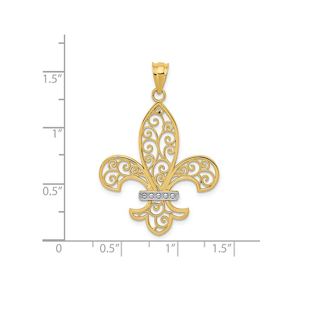 Two-Tone Filigree Fleur de Lis Pendant (14K)