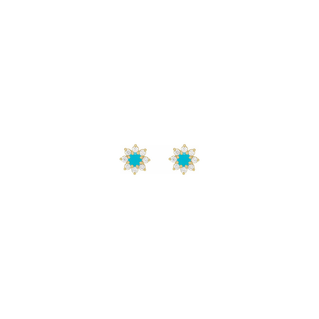 Natural Turquoise and Diamonds Flower Stud Earrings