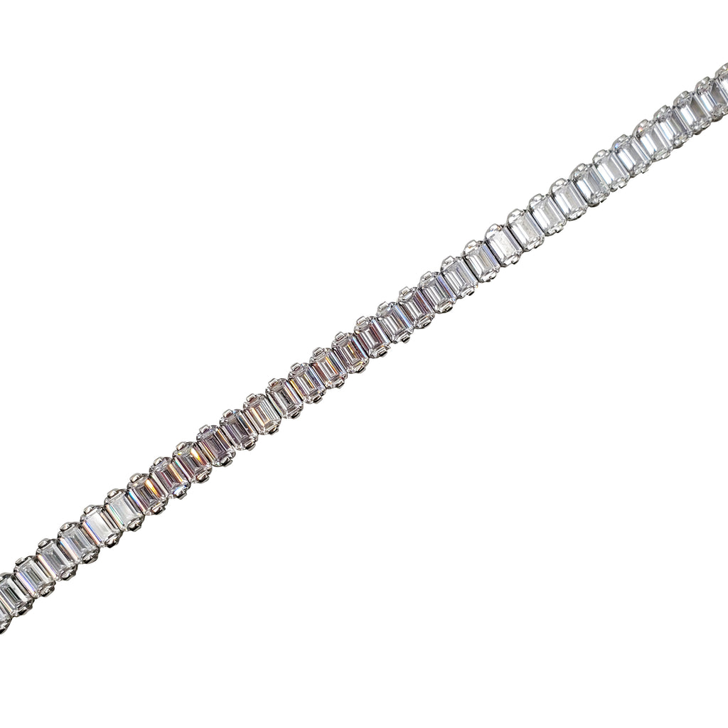 Cubic Zirconia Baguette Stone Bracelet (Silver)