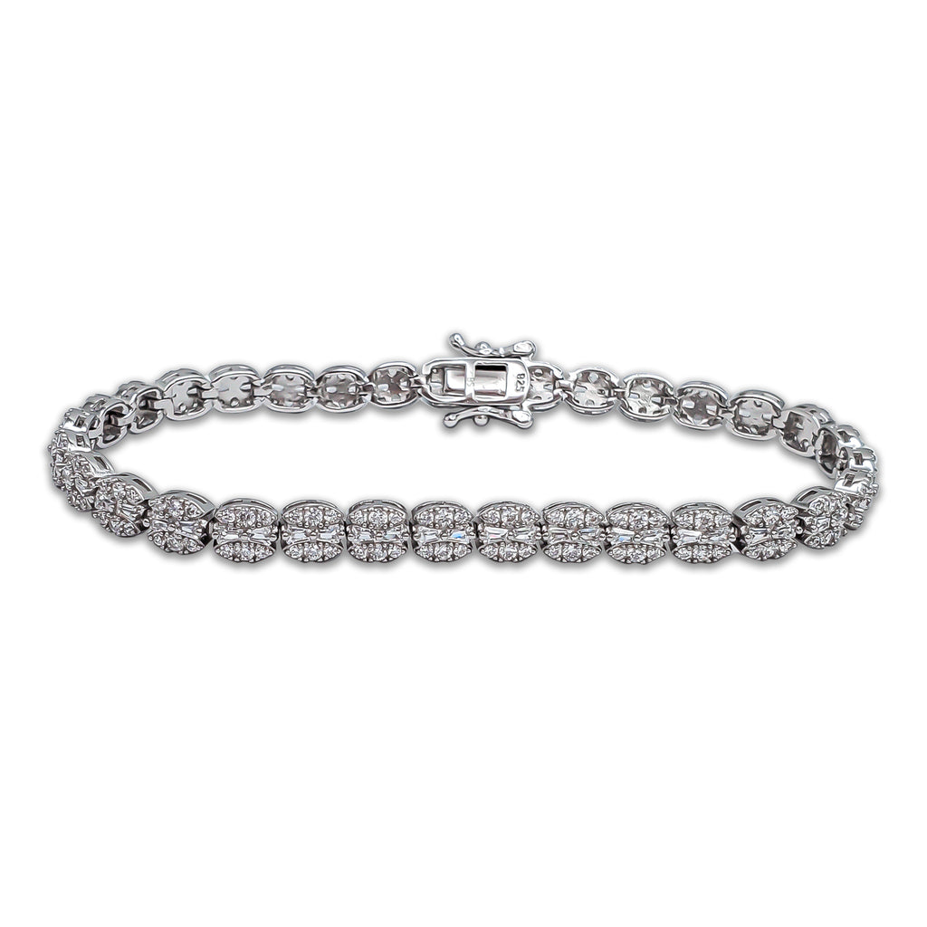 Zirconia Round & Baguettes Bracelet (Silver)