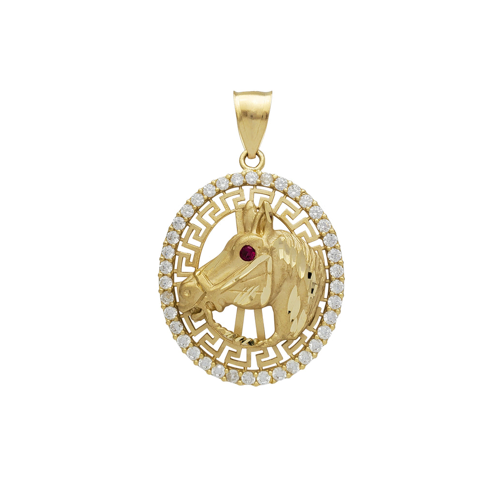 Greek-Frame Red-Eye Horse Head Pendant (14K)
