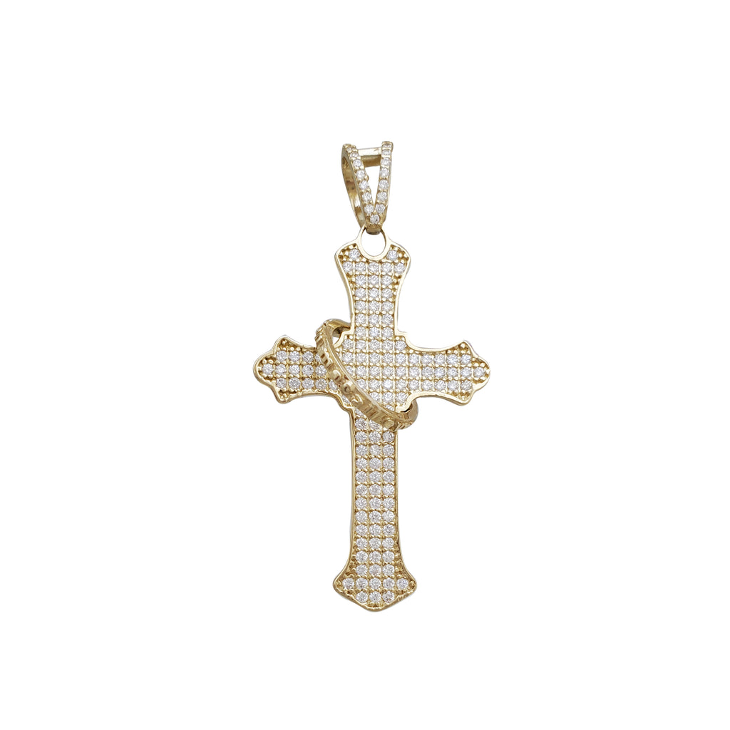 Ring With Iced Out Cross Pendant (14K
