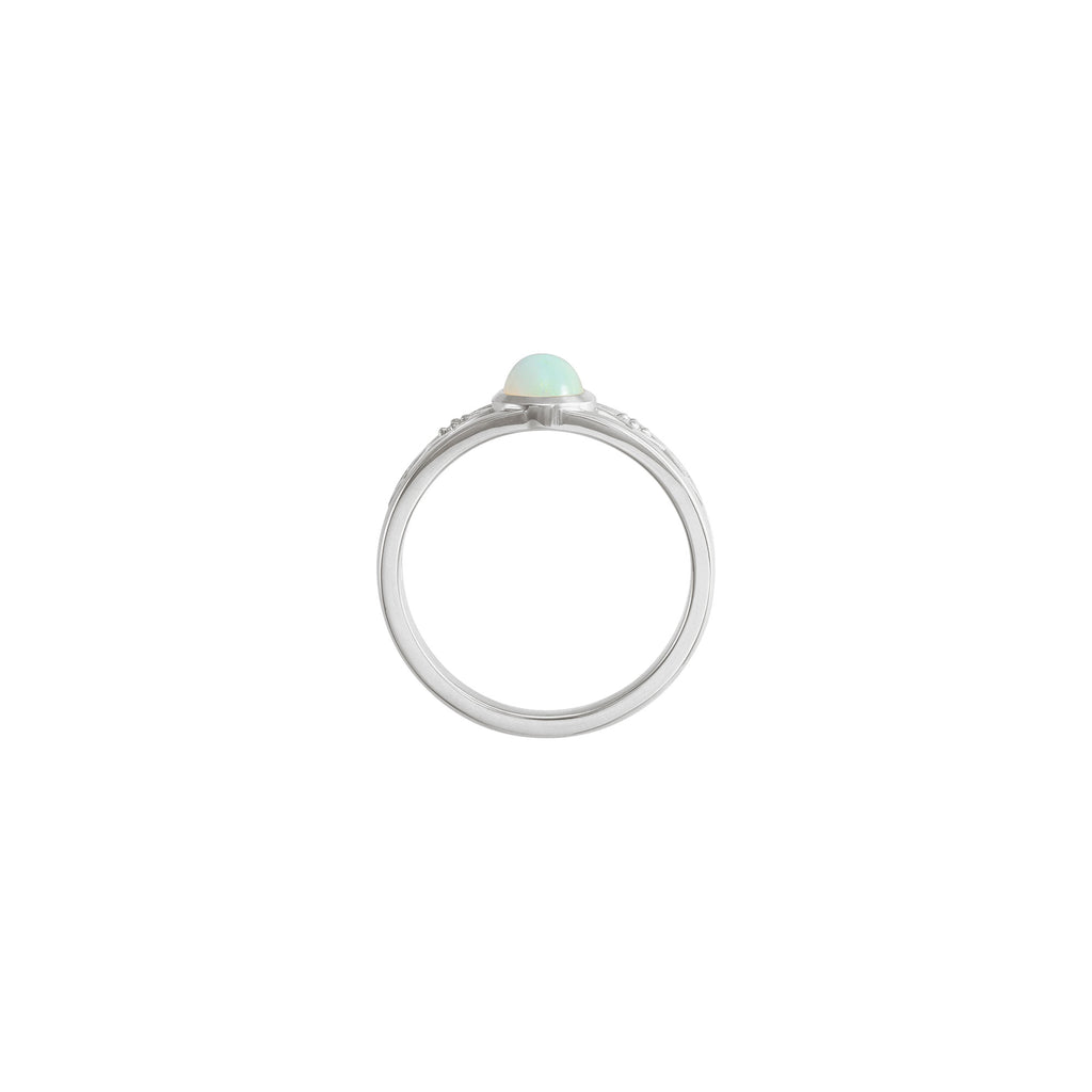 7x5 mm Oval Cabochon Opal Diamond Accented Ring