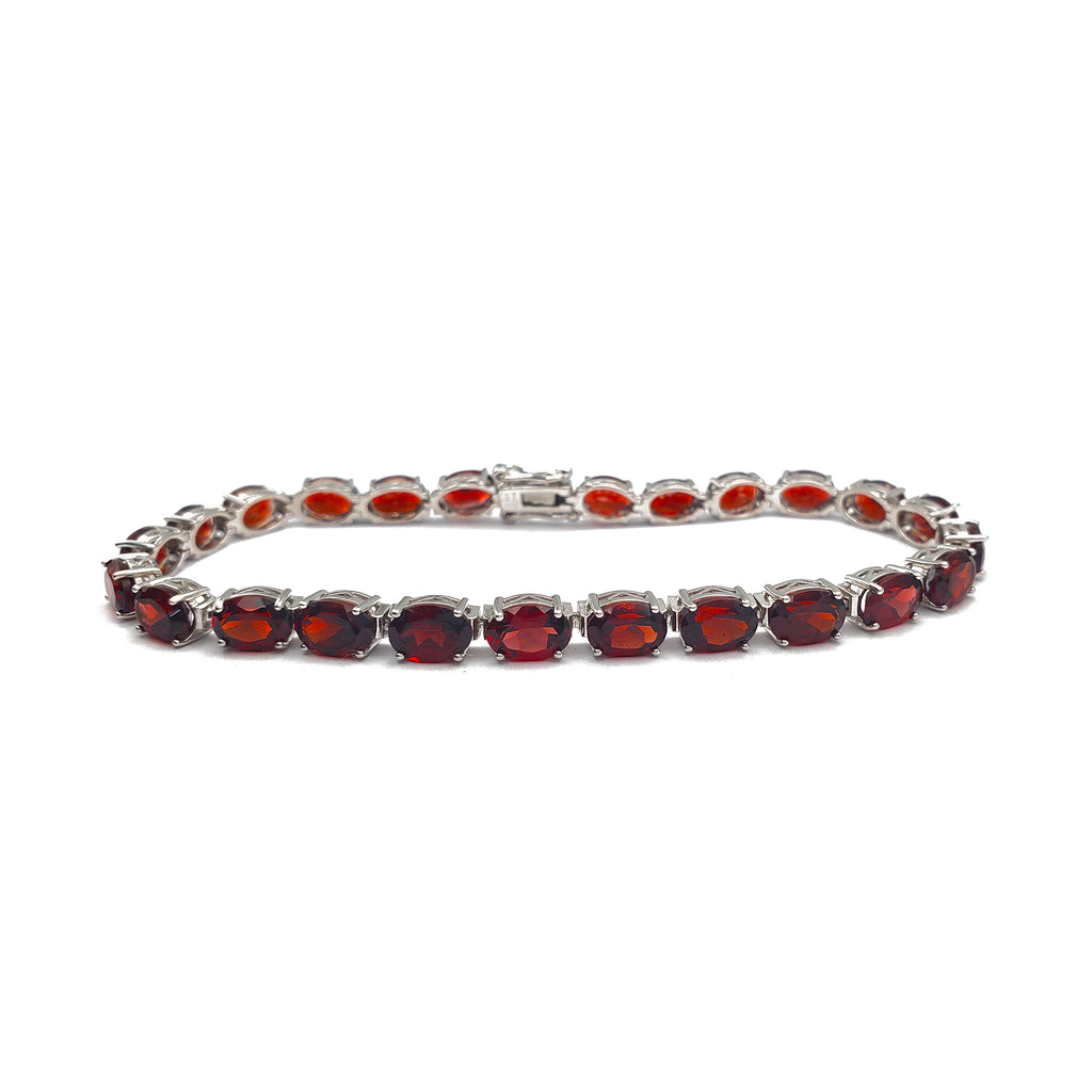 Zirconia Dark Red Oval Tennis Bracelet (Silver)