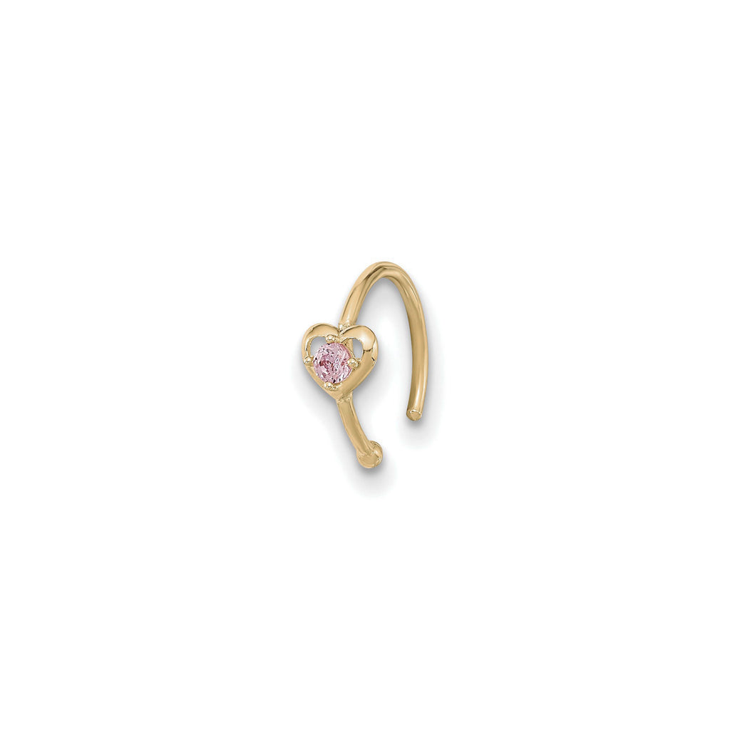Pink CZ Heart Hoop Nose Ring (14K)